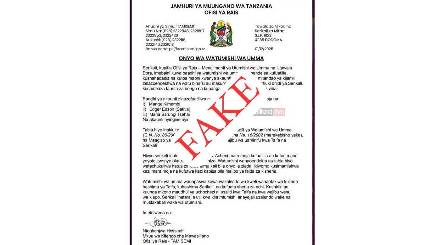 TAARIFA HII SIO SAHIHI